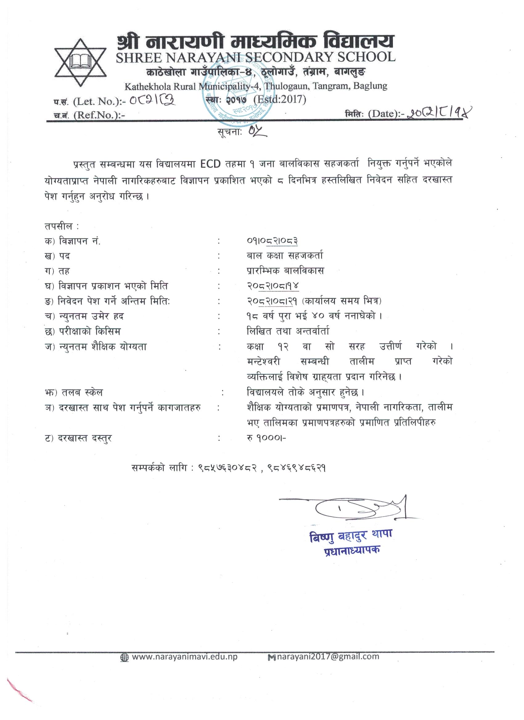 बाल बिकास सहजकर्ता छनाेट परिक्षाकाे नतिजा सम्बन्धमा